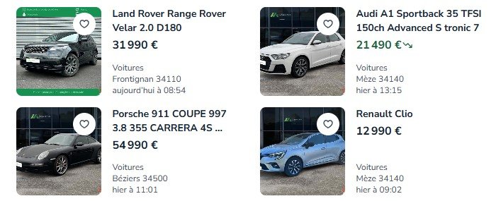 Des annonces claires, des véhicules cohérents et bien positionnés.